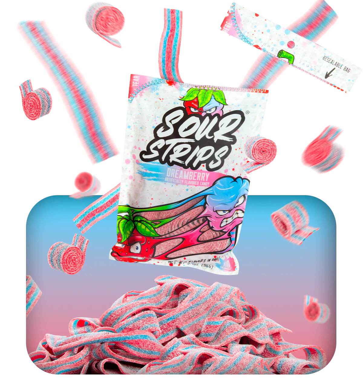 Sour Strips was born to bring the good name back to sour candy! With mouth watering flavors and an extreme sour coating on every strip, you won't want to eat anything else. We don't need a fancy sour meter on our bags for you to know we mean business.