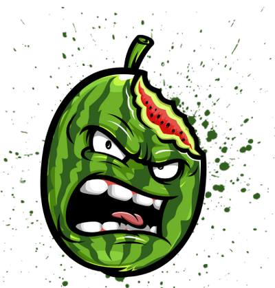 An angry-looking cartoon cotton candy with pink and blue swirls on a striped cone. The cotton candy has an aggressive facial expression, with furrowed brows, intense eyes, and bared teeth. The background is solid black. Cartoon of an aggressive-looking blue fruit, likely a berry, with an expressive face showing anger and a leafy green tuft on top resembling a hairstyle. The fruit has clenched teeth and bulging eyes against a solid black background. A colorful graffiti-style cartoon character with a fierce expression. It has large, angry eyes, a scowling mouth with protruding teeth, red tongue, and features a rainbow color palette with red, green, blue, and yellow segments. A cartoon strawberry with an angry expression, showing wide eyes, furrowed eyebrows, and gritted teeth. The strawberry has a green leafy top and a stem, giving a fierce and intense look. A stylized, angry-looking pink lemon with a green leaf on top sports an exaggerated frown, furrowed brows, and sharp teeth. The intense expression gives the fruit a fierce and confrontational appearance. Cartoon image of an angry yellow fruit with a green leaf on top, furrowed eyebrows, and an open mouth showing teeth. The black background highlights its exaggerated facial expression. A green apple with a leaf on its stem is depicted with an angry expression. Its eyes are narrowed and its mouth is open, showing teeth, giving it a fierce and intense look. The black background makes the vibrant green of the apple stand out. Illustration of two red cherries with angry faces. One cherry is slightly larger and has a prominent frown, while the other cherry displays clenched teeth. They share a green stem with two attached leaves. The background is black. Illustration of an angry strawberry with sharp teeth and menacing eyes. The strawberry has green leaves on top, is two-toned red and pink, and displays an aggressive expression. The drawing is stylized with bold outlines and vibrant colors. An animated fruit with a face split into two halves: the left side is red, resembling a strawberry, with an angry expression, and the right side is blue, resembling blueberries, also with an angry expression. Green leaves top the fruit, giving it a stem-like appearance. A cartoon apple with an angry expression, divided into two halves—one green and one red. It has fierce blue eyes and bared teeth, with a leafy stem on top. The green half is smooth, while the red half has sweat droplets. Four cartoon-styled angry fruits: a blue berry with green leaves, a green apple with a leaf, a multicolored striped candy, and a red strawberry with leaves. All have fierce expressions and veins popping on a black background.
